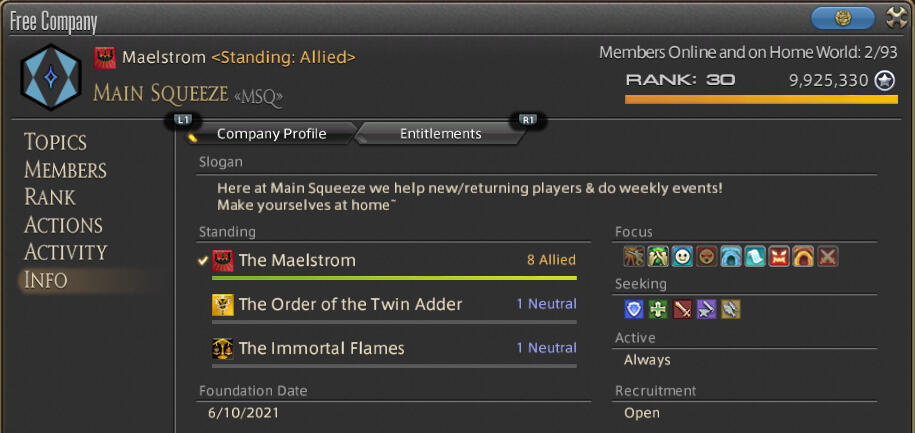 <MSQ> Is all about creating a family community that we can all call home away from home. New or Veteran players, everyone is welcome to join us! We love hanging out and doing weekly events & special holiday occasions!